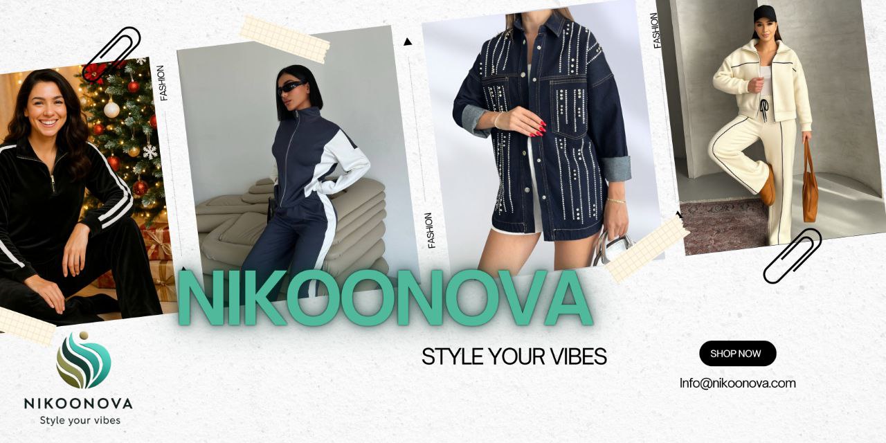 NIKOONOVA Women's Zip-Up Hoodie Tracksuit Set- CODE:5023- Soft Cotton Loungewear in Black & Charcoal Grey